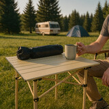 Camping Table Folding Camping Table Steel Aluminum Top Portable Picnic Beige