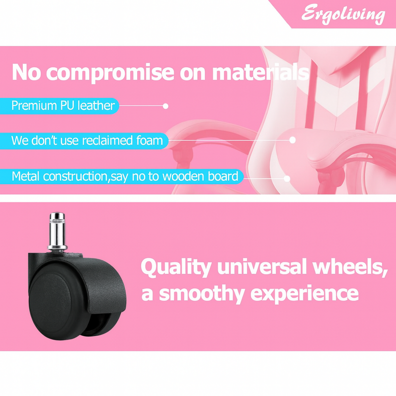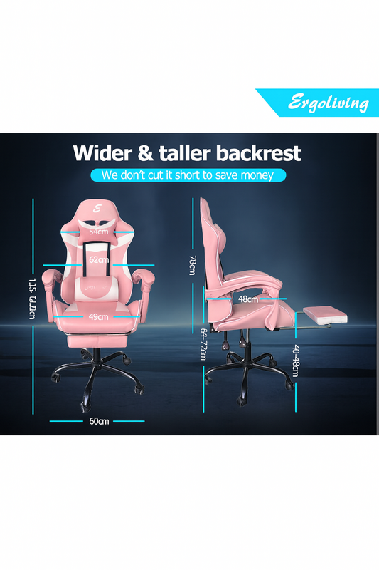Ergoliving Computer Gaming Racing Chair Office Recliner Pu Leather Pink
