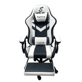 Ergoliving Delux RGB LED Lights Gaming Chair Office Computer Racing Massage Lumbar Retractable Footrest White