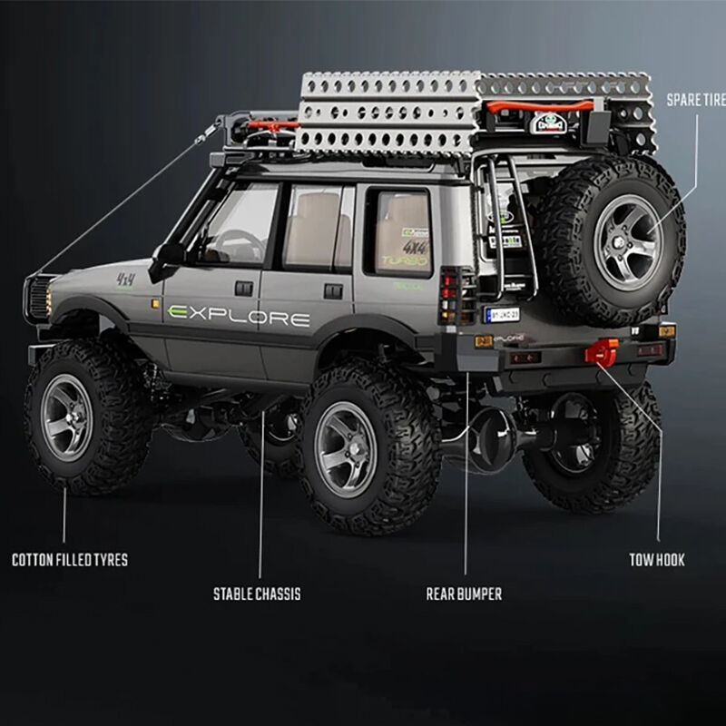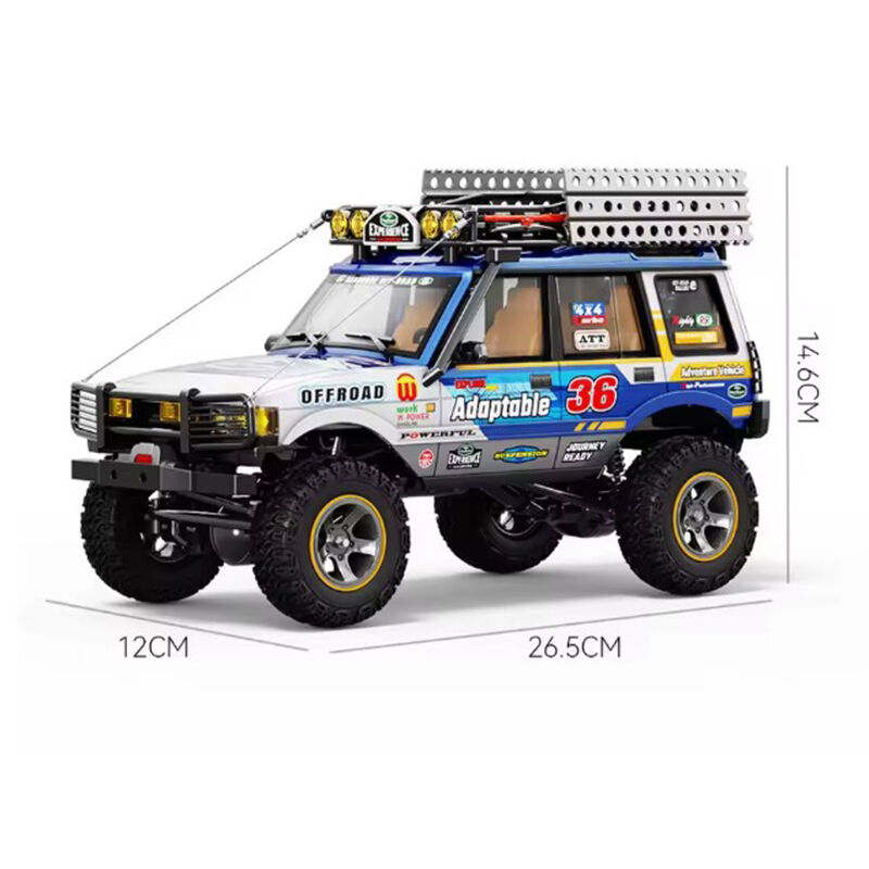 Built with coated rubber tires for improved grip and stability, the crawler performs well on rough surfaces. It also comes with detailed scale accessories including steel rope roof rack trim and spare tire, enhancing the overall appearance. Compact size and one handed remote control operation make it easy to use both indoors and outdoors.