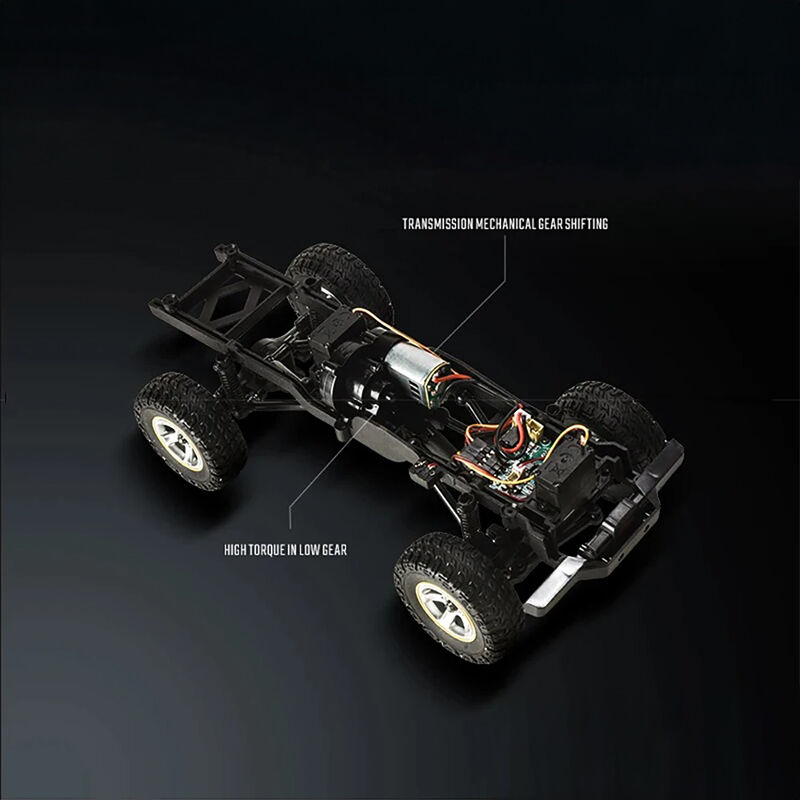 JXC LR1801 1/18 scale RC crawler is a highly detailed off road model designed for both beginners and hobby users. Equipped with a mechanical gearbox system, it supports high speed low speed neutral and automatic shifting, giving better control across different terrains. The full proportional 2.4GHz remote control system allows smooth throttle and steering response for precise driving.