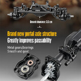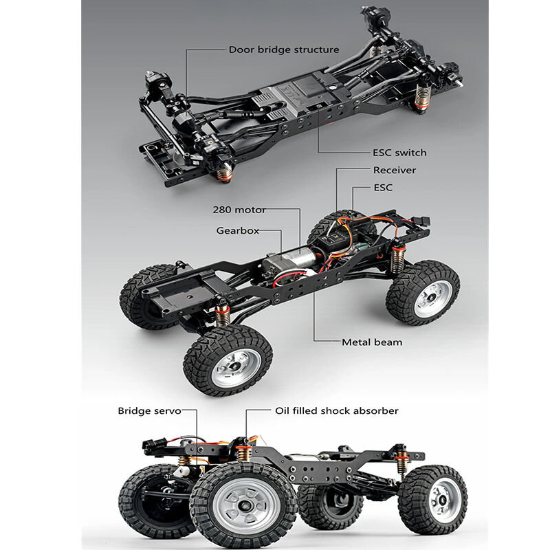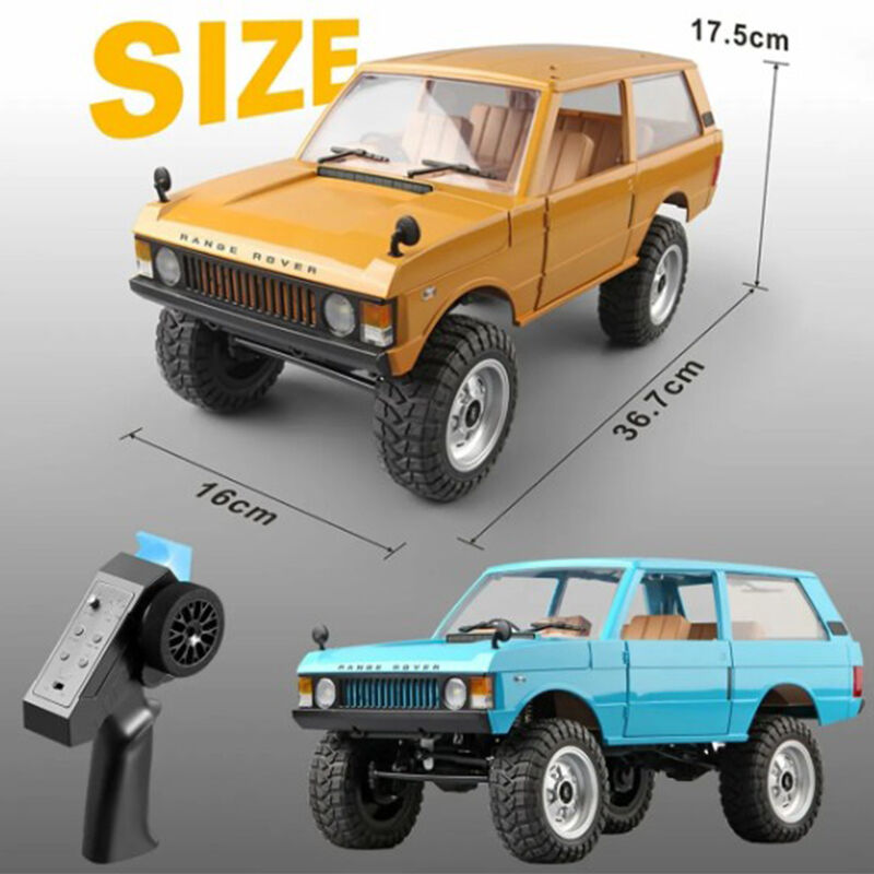 Officially licensed Land Rover 1970 Range Rover RC crawler in 1/12 scale with highly detailed body and strong off road capability. Designed for both hobby use and collection display, this model delivers realistic appearance with reliable climbing performance. Equipped with metal hydraulic shock absorbers and reinforced front and rear axles for improved stability and durability on rough terrain. The upgraded tire structure includes metal anti detachment design to ensure secure grip during driving. Powered by a 280 brushed motor and 7.4V 1200mAh battery, providing strong torque and extended run time. Waterproof steering servo allows driving in different weather conditions. Built with a durable chassis, metal beams and tough PVC shell with roll cage for long lasting use. Independent receiver design supports DIY upgrades and allows additional lighting installation for enhanced customization.