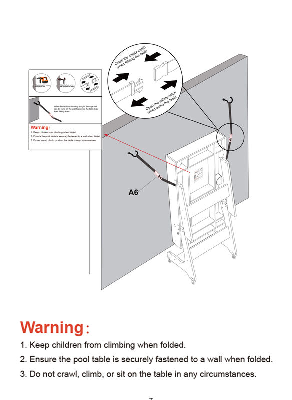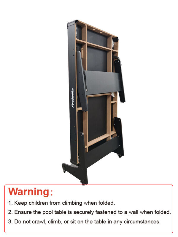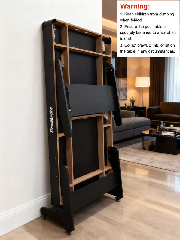 2. Ensure the pool table is securely fastened to a wall when folded.