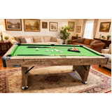 Includes: 1 x pool table, 1 x set of billiard balls, 2 x pool cues, 2 x tip chalks, 1 x triangle, 1 x surface brush, 1 x assembly instruction