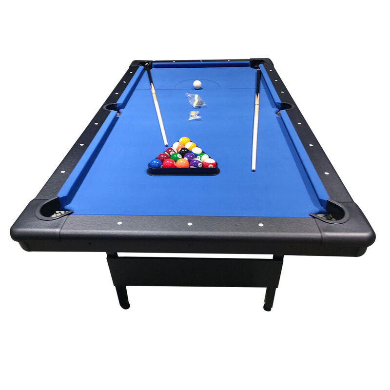 Includes: 1 x pool table, 1 x set of billiard balls, 2 x pool cues, 2 x tip chalks, 1 x triangle, 1 x surface brush, 1 x assembly instruction