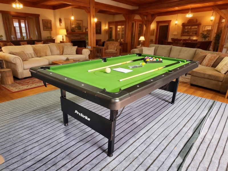 The ProStrike 7ft Pool Table is designed for serious fun and everyday convenience. Built with a rigid, wobble-free frame and durable steel folding legs coated for corrosion resistance, it ensures stability and long-lasting performance. Adjustable leg levelers allow precise balance even on uneven surfaces, ensuring fair play every time. Easy to assemble in just 20 minutes, it’s ideal for homes, garages, or entertainment spaces. Includes all essential accessories: cues, balls, chalk, triangle, and brush – plus a durable woven net bag for easy ball retrieval. Foldable for compact storage, the ProStrike table is perfect for both casual games and competitive matches.