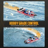 【HAVE MORE FUN WITH THE BRUSHLESS RC BOATS & SHIPS】High waterproof system with only a single cover can keep the water out of fast rc boat. 2.4Ghz radio-controlled distance of over 656ft, good interferrence ability, allows more than 20 remote control boats to be raced at the same time.